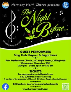Why not hire Harmony North Chorus to entertain at your next event? We can perform at corporate functions, charity events, community Entertainment events, birthday parties, christmas parties, awards nights, weddings, engagements, anniversaries, engagements, and even funerals and memorial services. Contact Deb at debcubitt@hotmail.com